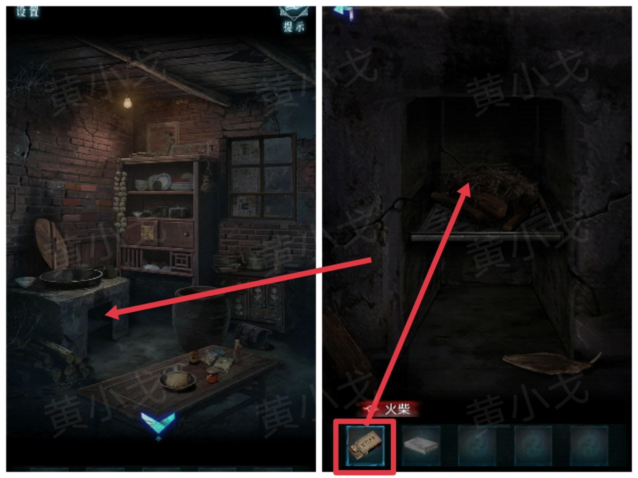 16.点击灶孔,用【火柴】点燃柴火