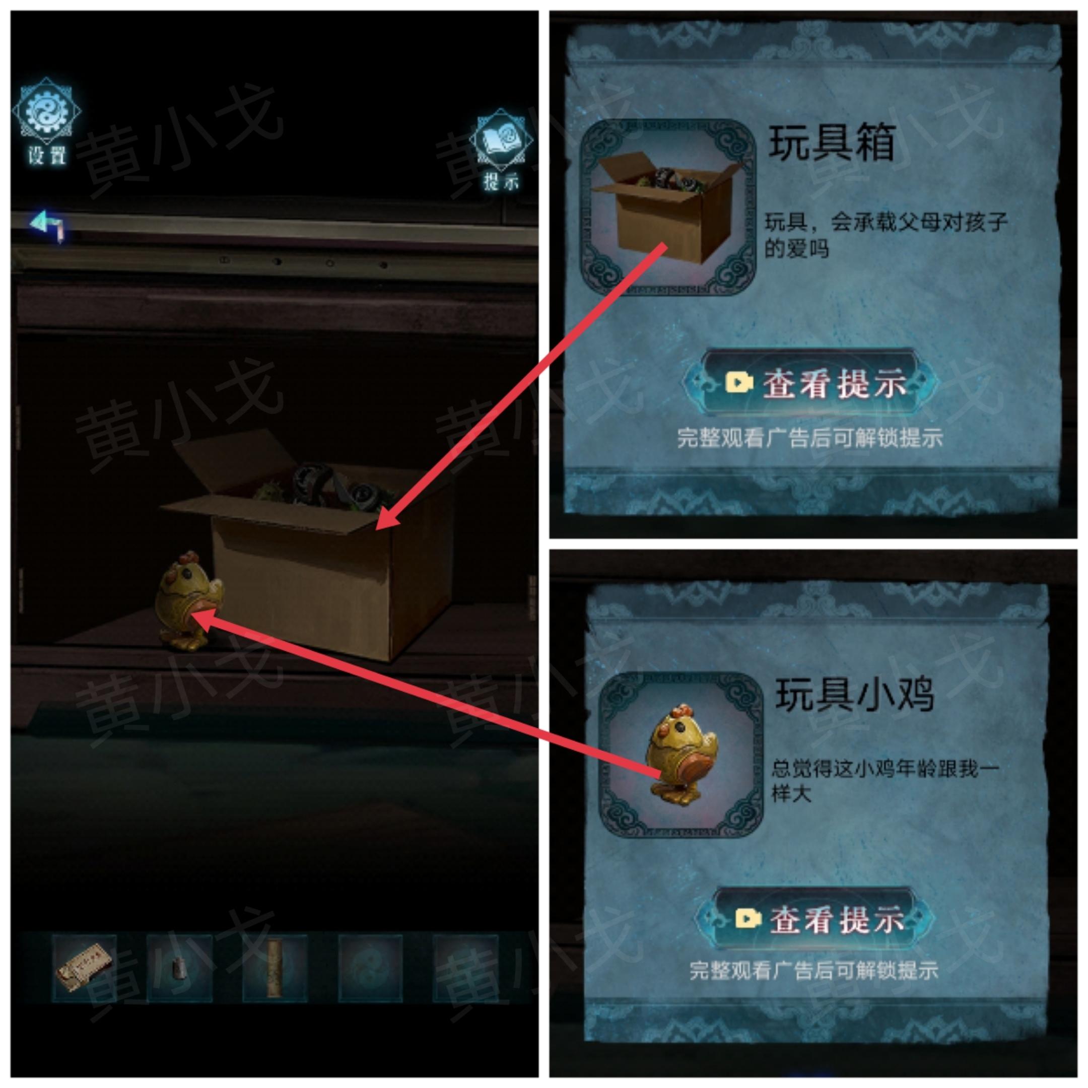 32.打开柜子,获得【玩具小鸡】和【玩具箱】