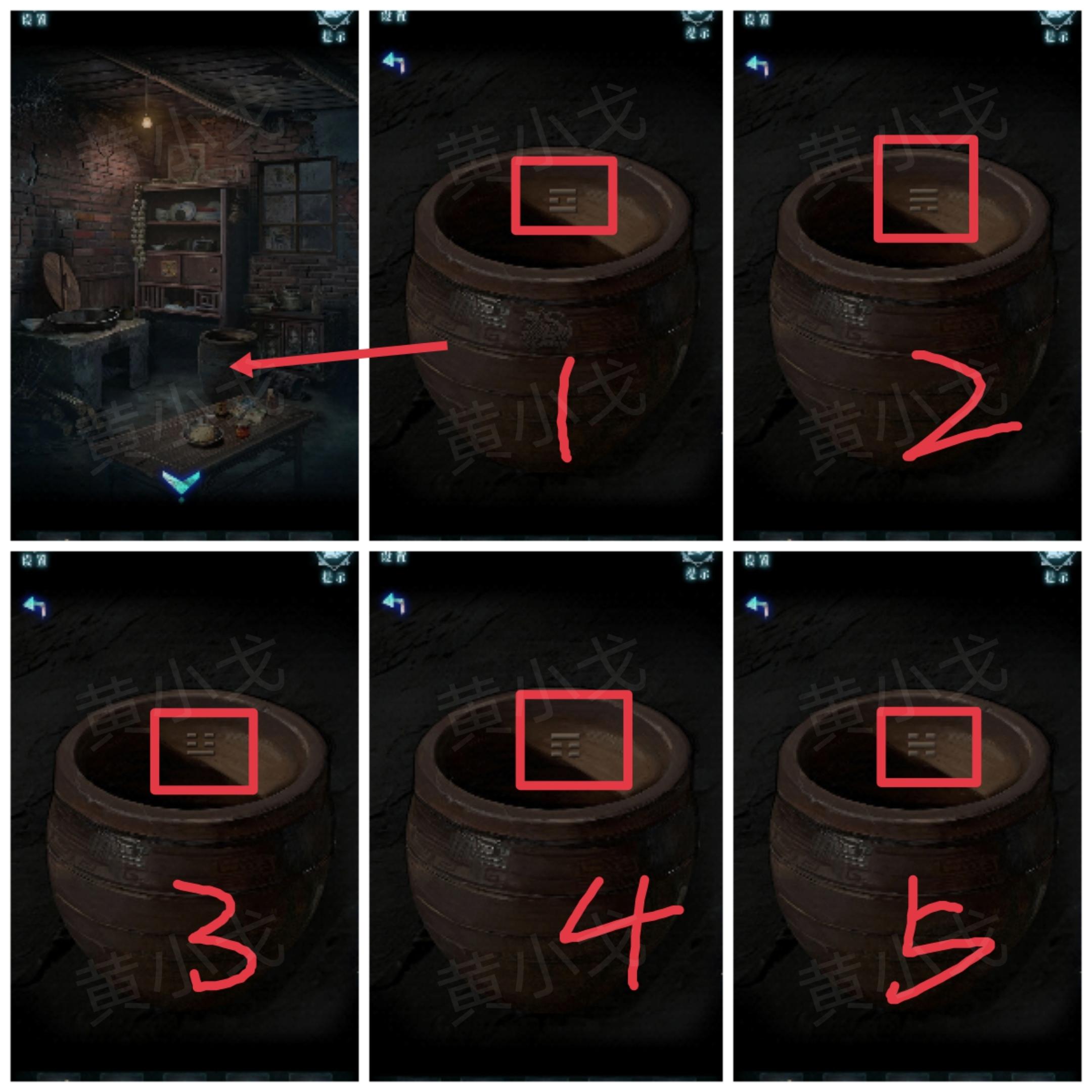 11.点击水缸,注意水缸内壁里的八卦图案和水缸上的玄武图案;转动水缸,八卦图案随之变化