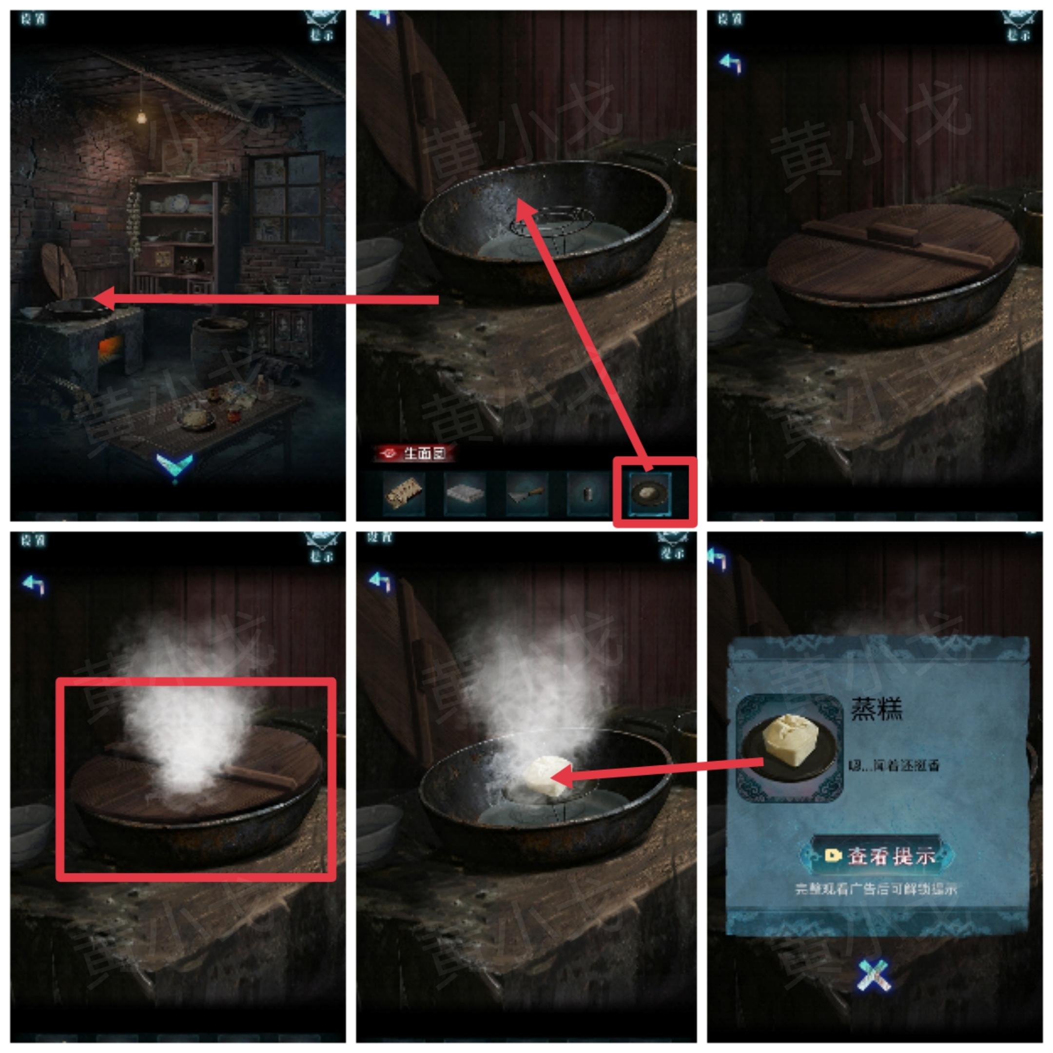 17.点击灶台上的锅,放入【生面团】,盖上盖子,退出特写再进入,冒蒸汽时,打开盖子,获得【蒸糕】