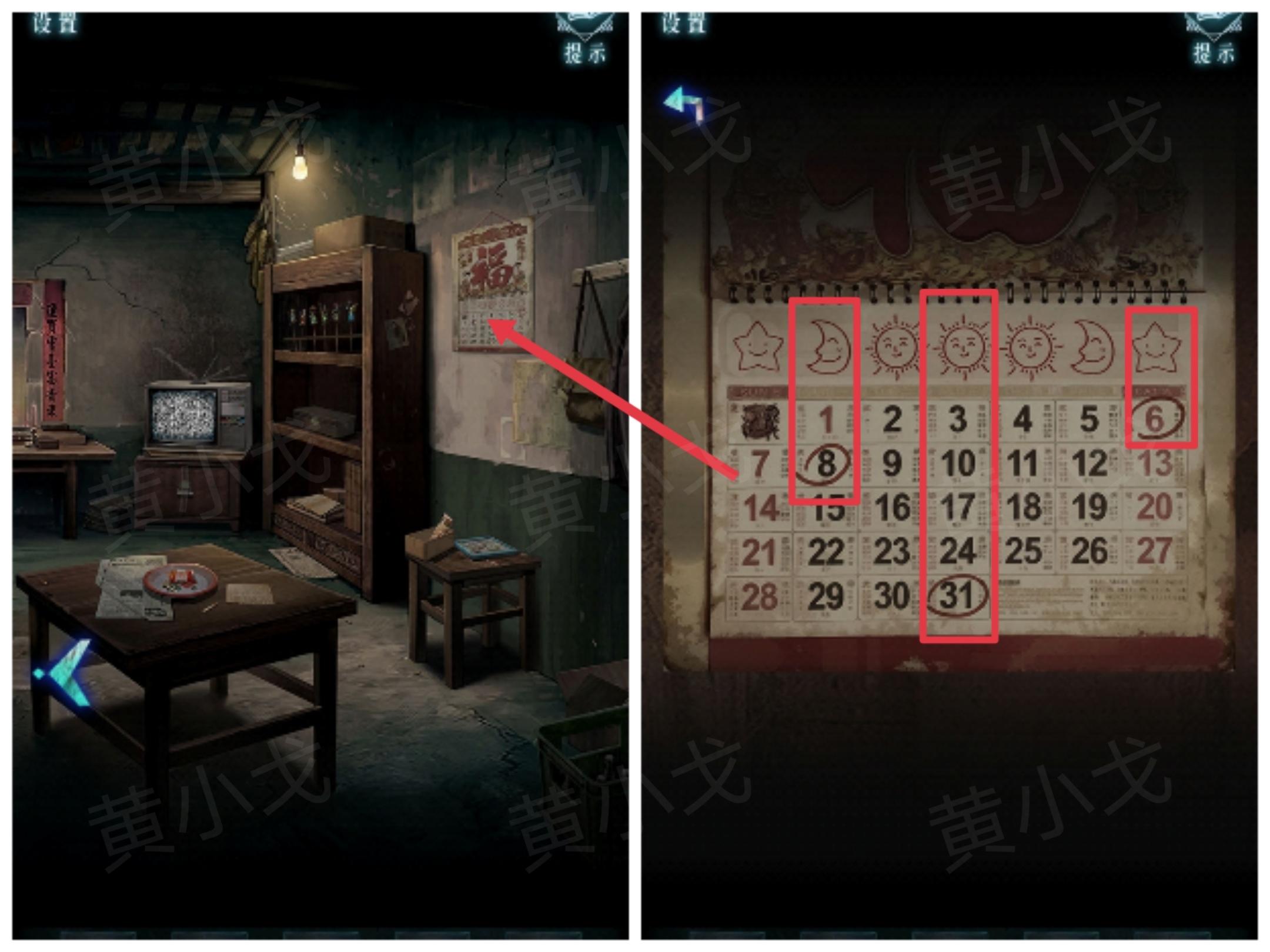 2.查看墙上的挂历,获得线索