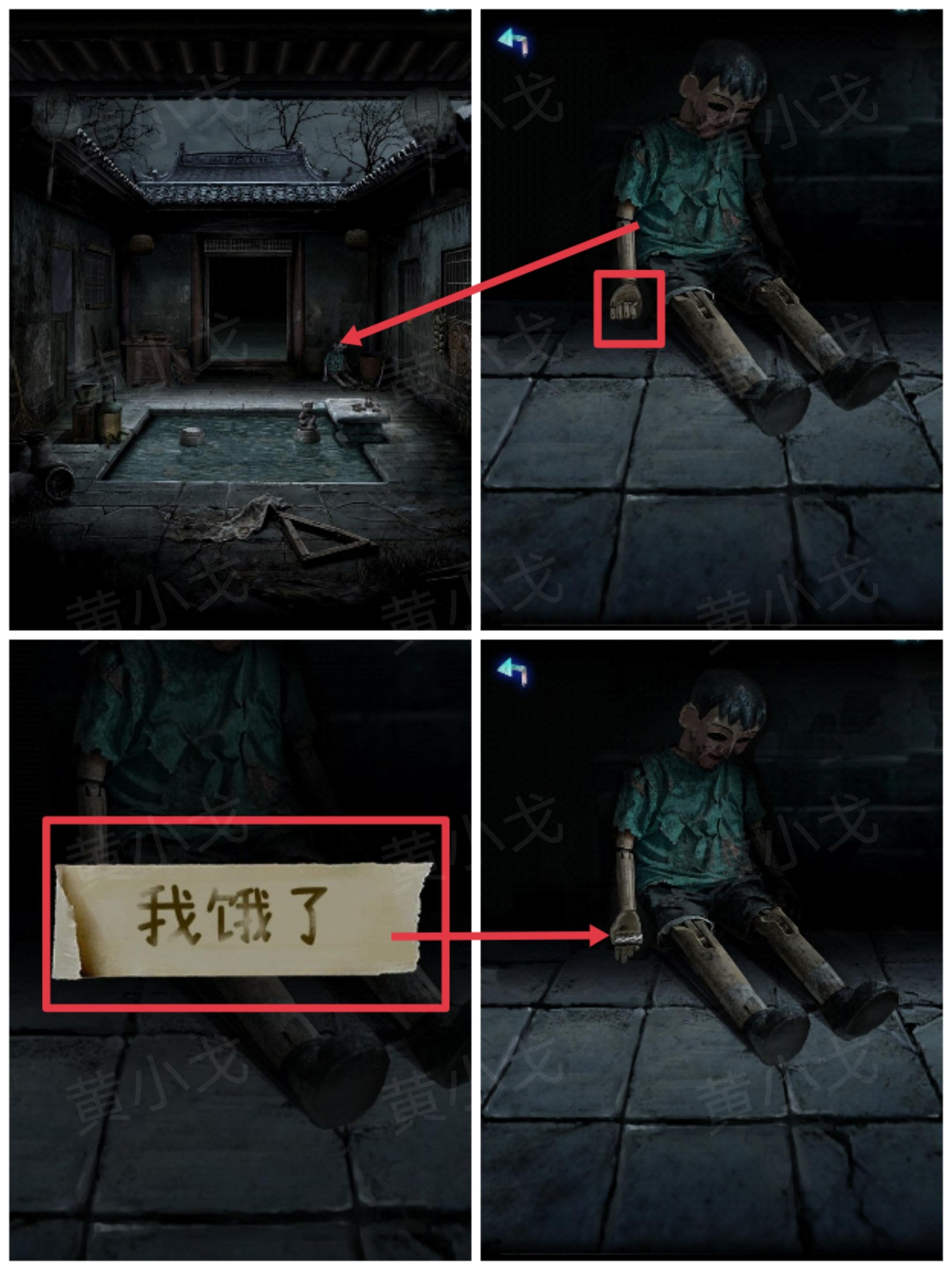 33.点击地上的木偶,打开它的手,查看它手中的纸条,获得线索