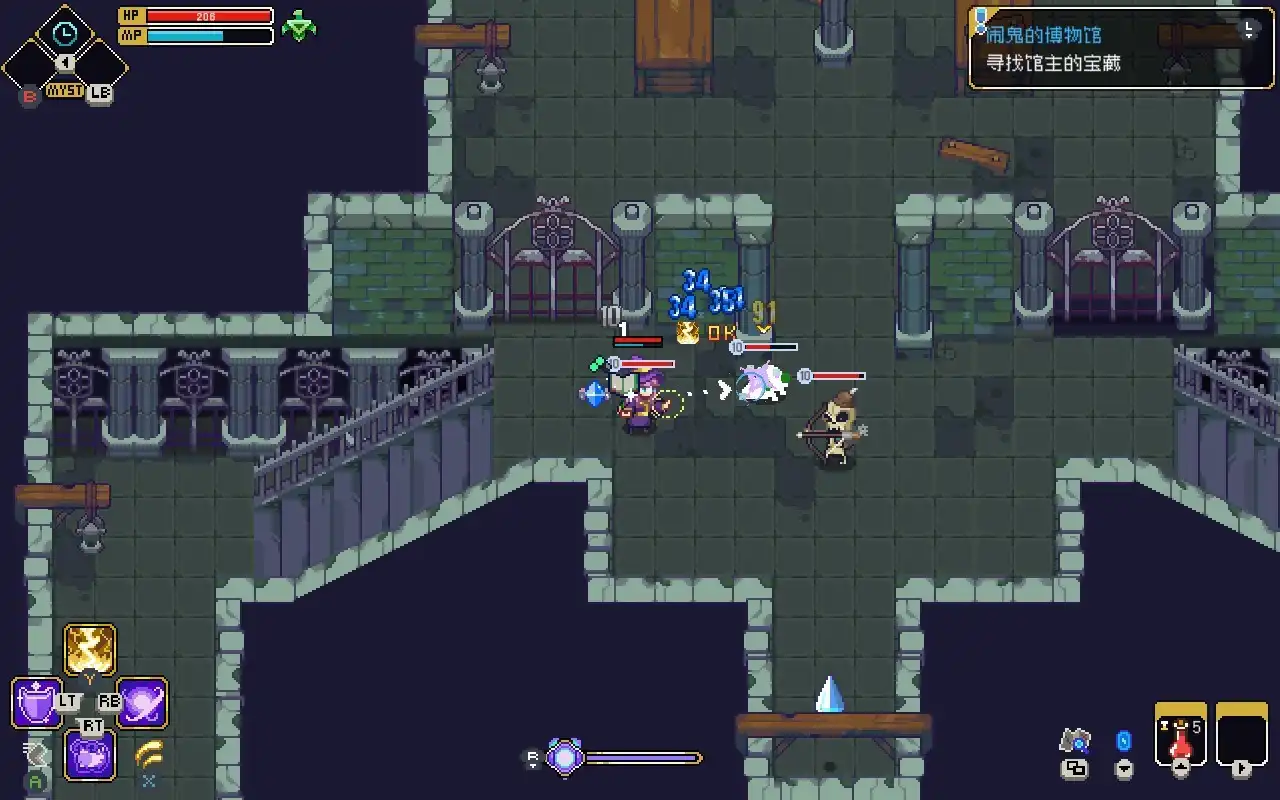 不过从整体来看,我依然觉得本作是一款相当具有可玩性的作品。抛开解谜部分,游戏在战斗上采用了即时制,四个职业有着自己独特的技能树,手感虽然谈不上有多出色,但是在一众平面像素风格的作品中也不算差。角色的武器、头盔、衣服等装备六件套还有品质、等级和随机词条,给游戏赋予了不少刷的成分;获得的魔物材料也能组成魔卡装配在腰带上带来各种增益效果,进一步增强了刷的正反馈。