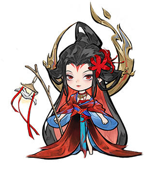这是一位有幸见过她的画师,在步入轮回前为她绘制的肖像。画中保留了她标志性的曼珠沙华花朵,一袭红衣,卓然而立。就算是Q版也能看出她的无双美貌……