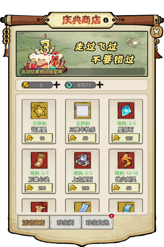二、庆典许愿&庆典商店&聚宝阁