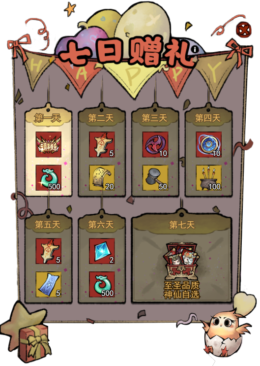 活动期间,每天登录游戏可领取对应道具奖励~仙友们记得每天登录游戏领取哦!