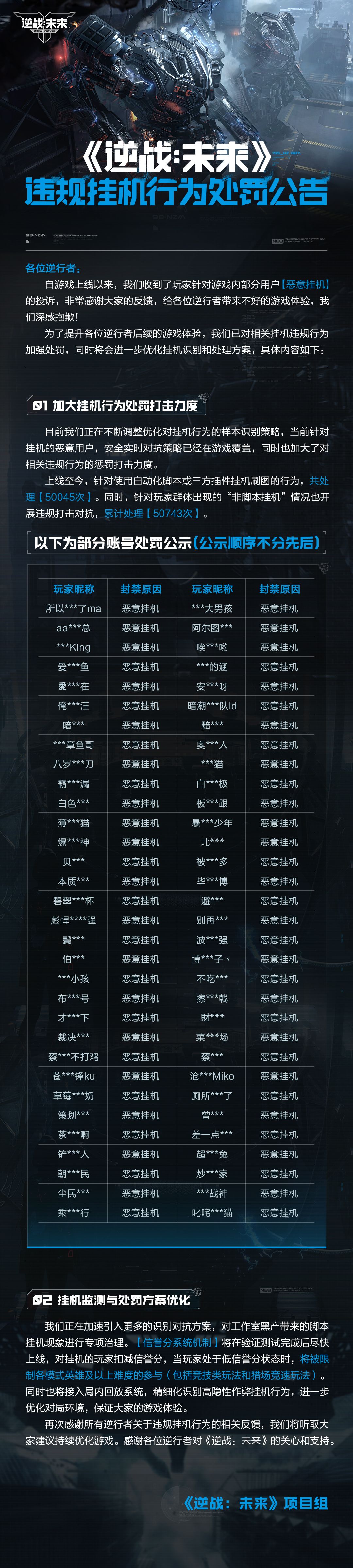 《逆战:未来》违规挂机行为处罚公告(1.13~1.22)