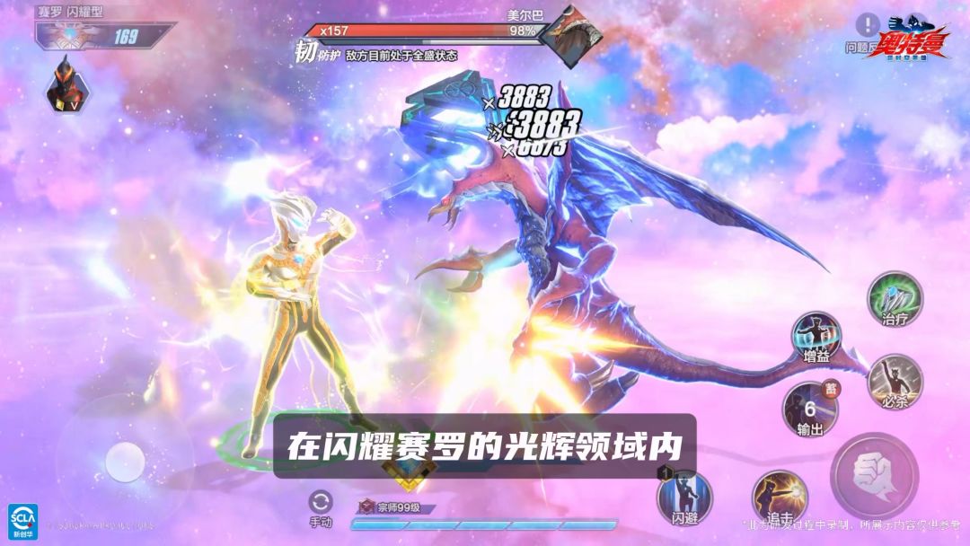 闪耀赛罗的奥义技能 “光辉繁星驱动” 深度还原 IP 名场面,兼具高伤害与视觉冲击,同时还有全队回血能力!
