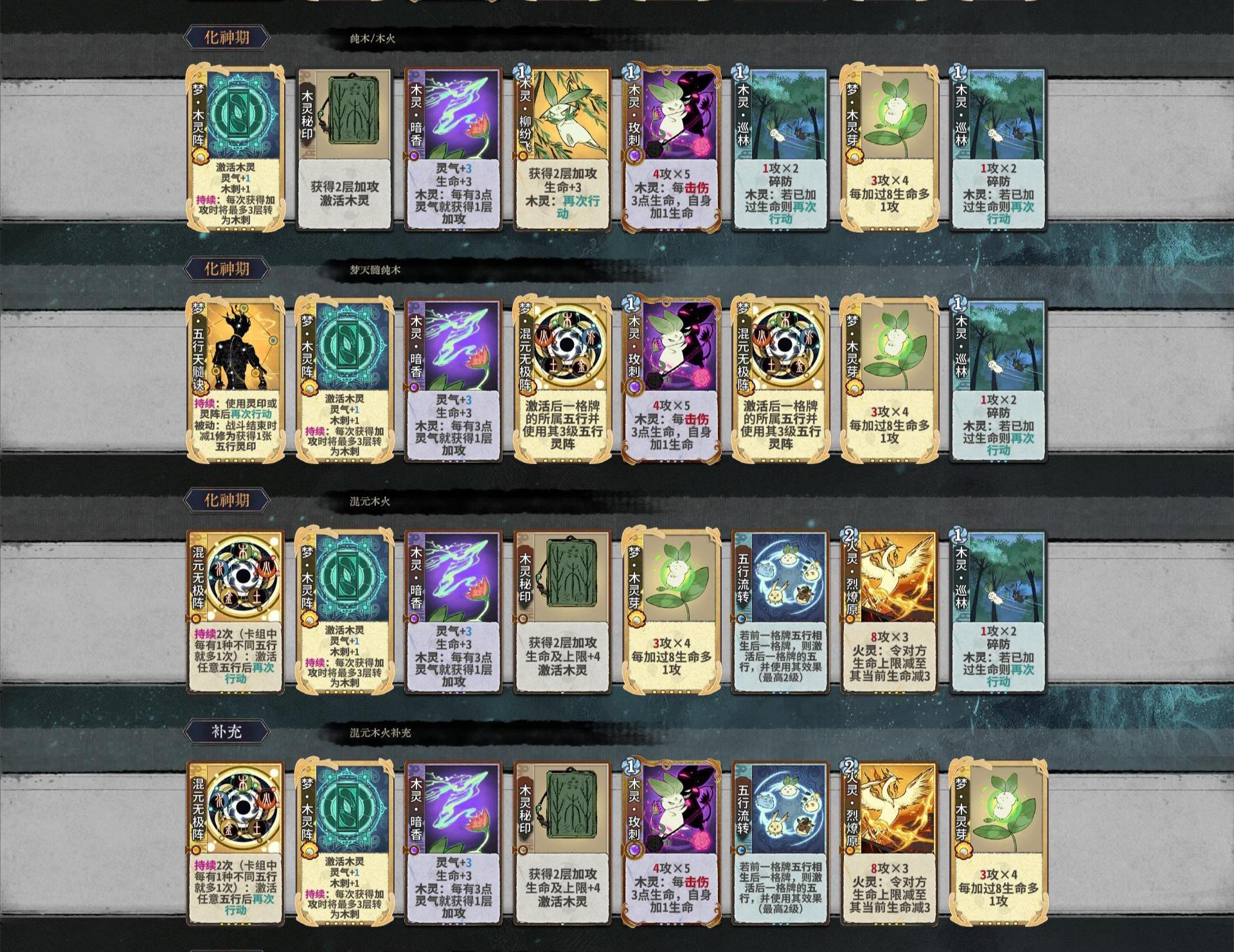 纯木/木火的核心是梦木阵,让加攻收益更高打多段,有梦木阵一张牌就可以考虑构筑。