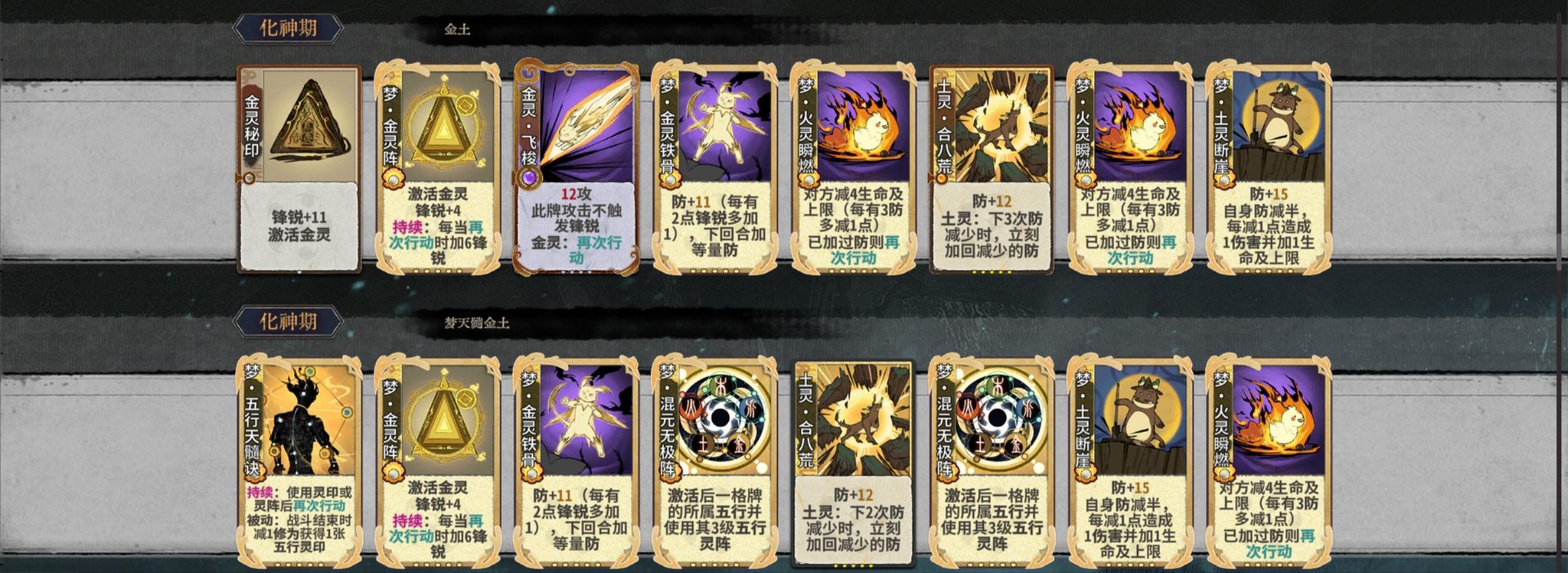 金土的核心是金印、梦金阵、梦铁骨和梦断崖,金印和梦金阵给的高初始锋锐和梦铁骨的高数值,和梦断崖打出好的配合,有梦铁骨和梦断崖可以考虑构筑。
