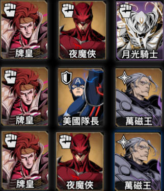 进阶的是未来配队,加上了夜魔侠,定位同样是战士,三战普攻流派,夜魔侠的战技【感官洞察】是指挥战技,会让我方角色攻击指定目标并且还会提高对其的普攻伤害,这会使的牌皇的被动挂的易伤目标不会丢失,其次最重要的,夜魔侠的【心灵1】夜魔侠有技能动作就会使我方角色攻速提高50%,再看他的终极技攻击区域目标7次就能快速完成牌皇的爆炸卡牌简直是理想的完美普攻队。