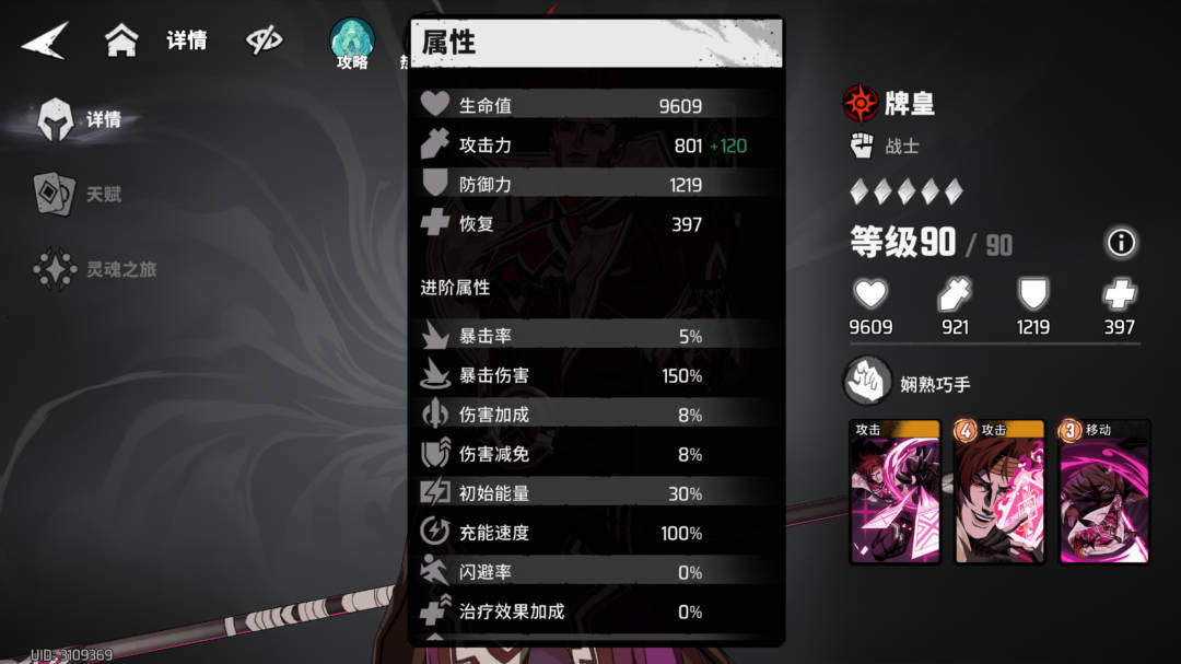 最后考虑的方向是完全体【灵魂】需要满足相邻敌人数为1,牌皇的伤害就能无视敌人60%防御力,使得牌皇的伤害非常的高。