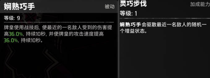 21级解锁天赋【灵巧步伐】还能驱散最近的一名敌人的随机一个增益,有加伤buff还带驱散,这个被动就已经赛过old老英雄奇异博士,并且牌皇只是作为战士出场,灵活性更高,这也使牌皇是不惧怕buff怪。