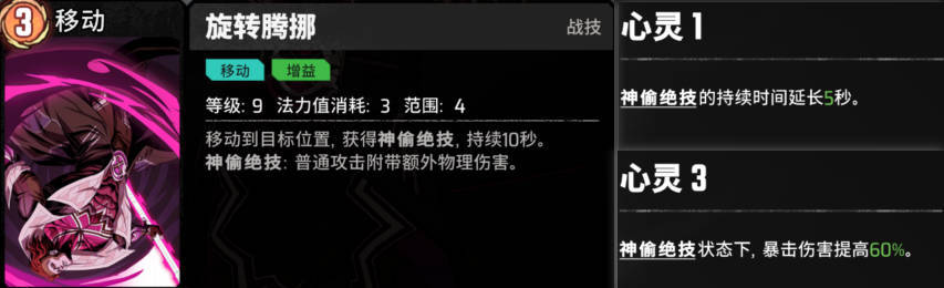 移动目标位置,范围还算很不错,并获得【神偷绝技】持续10秒。