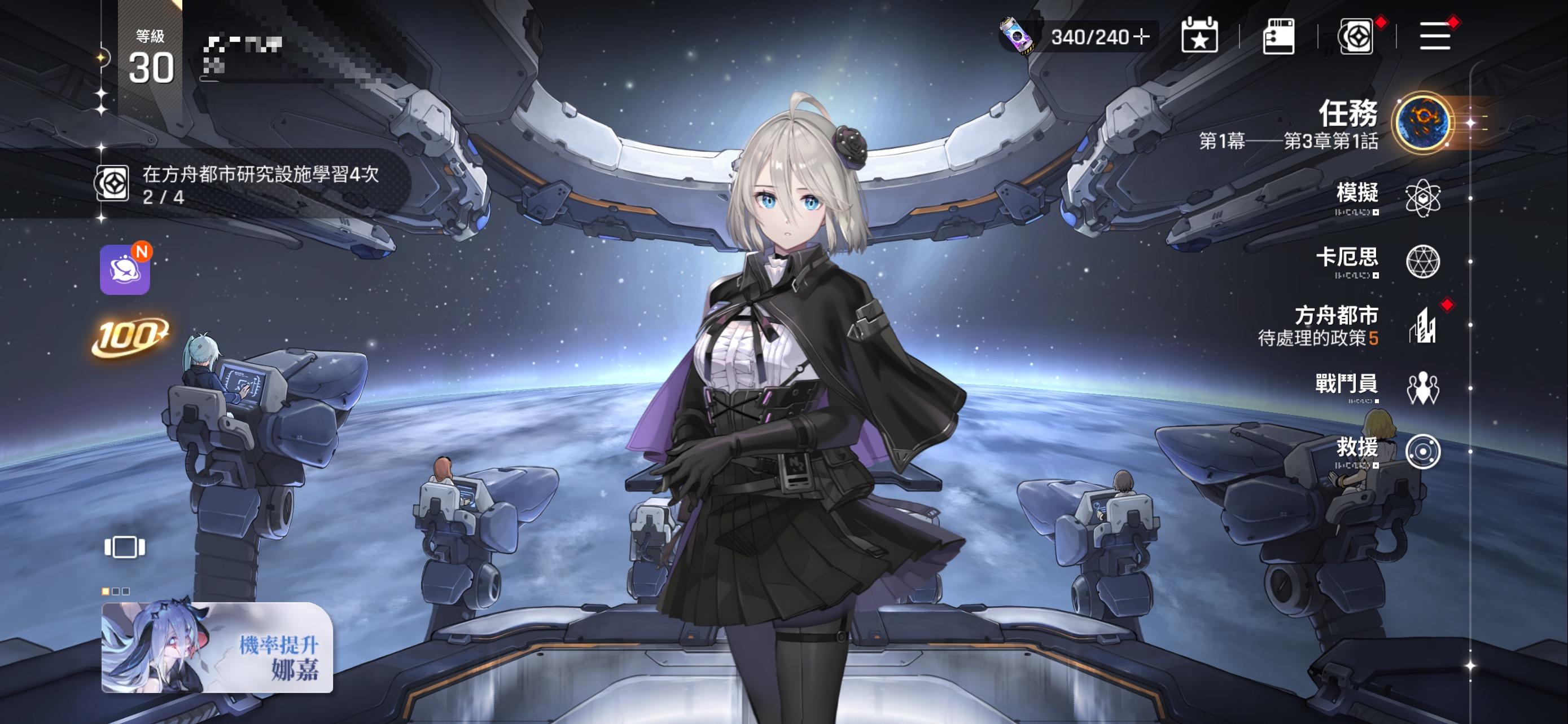 3、这一条是纯纯的负面感受了。在结束新手引导后来到主界面大厅进行操作时,我发现游戏的UI真是无比的杂乱,令人眼花。UI风格和质感明显模仿了《明日方舟》,但在易用性上完全不符合国内用户习惯,而且明明体量不大,在各界面进行交互操作,界面切换时有非常明显的卡顿,就凭这一点,剧情即使再好,都让我很难有坚持下去的动力。
