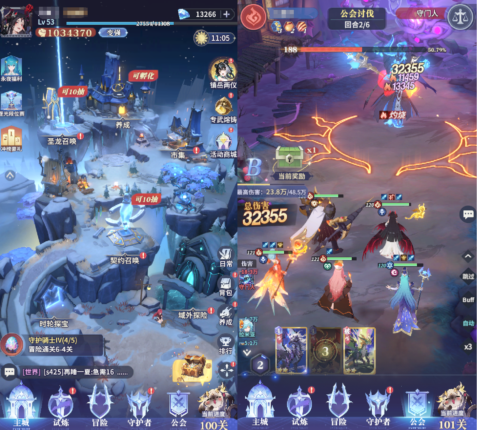 游戏另一大问题是,实际体验下来游戏的长草期比想象中来得更快,可能与因为游戏中各玩法难度数值的设置有关,在没有足够的战力提升前,玩家过早陷入重复的循环收菜体验,而这往往离弃坑就不远了。