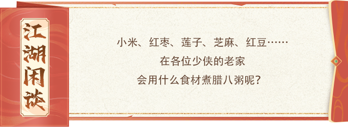 本次活动将在经典版与轻松版同步上线!无论少侠身在哪个江湖,都能一展大厨身手,熬上一锅香甜的腊八粥,把奖励抱回家。