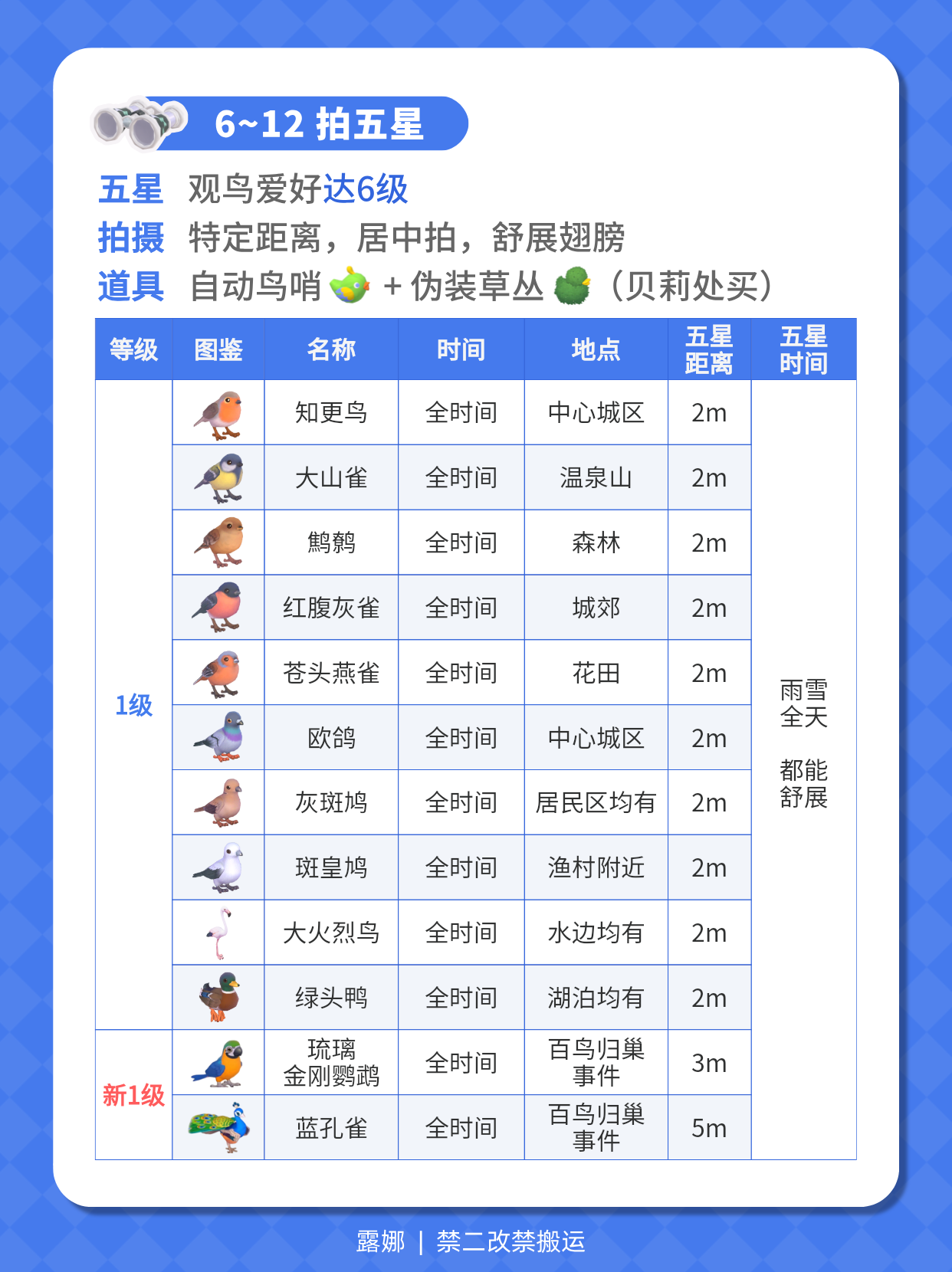 ③拍鸟五星④刷鸟虫鱼图鉴