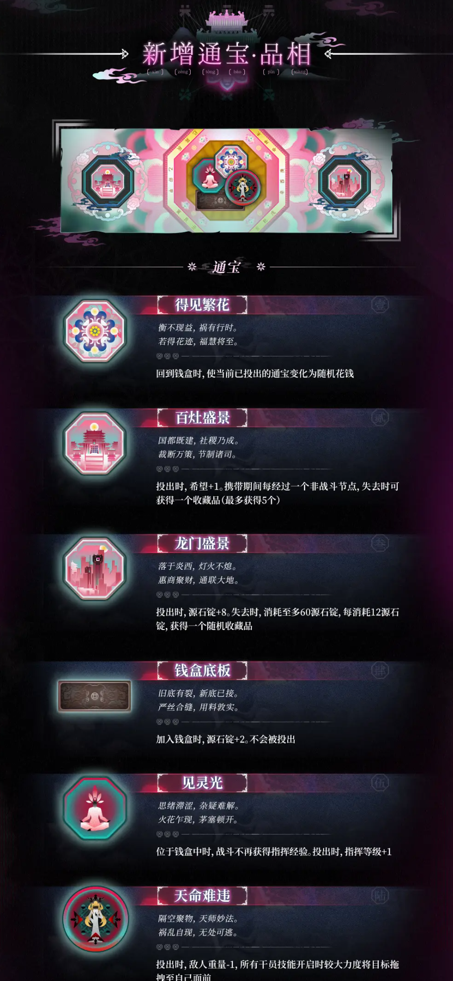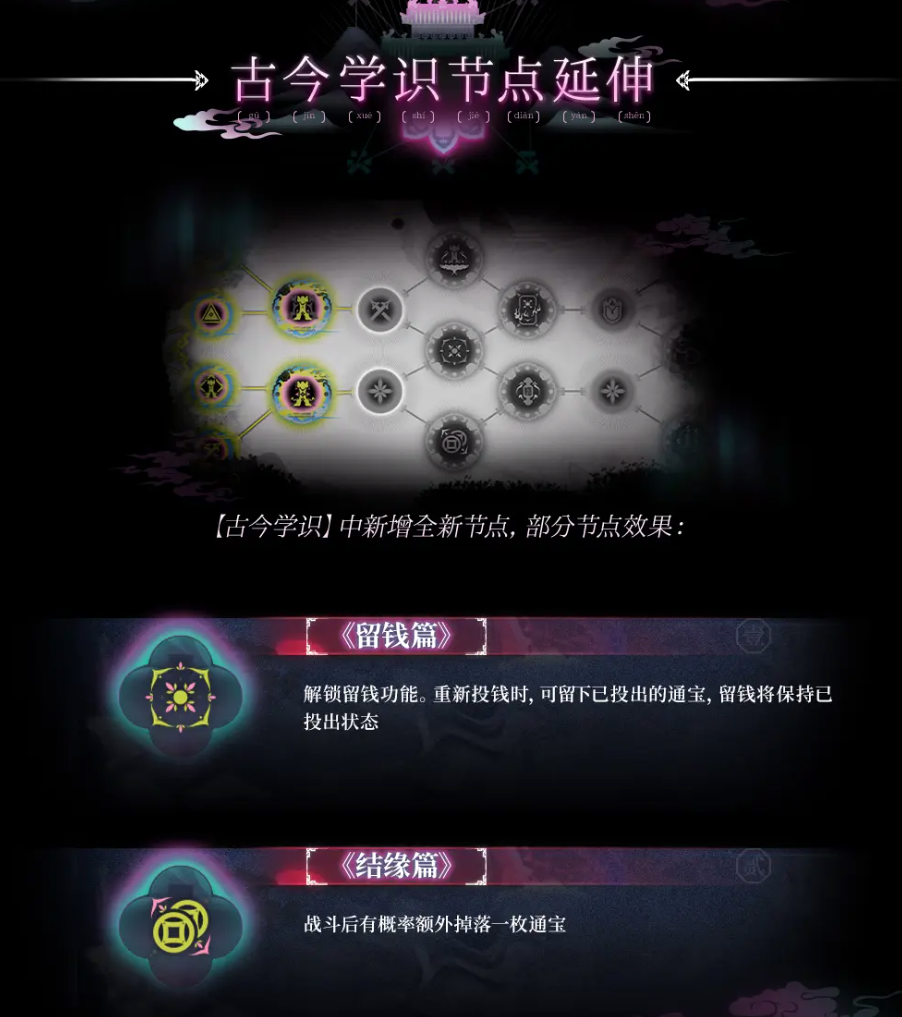 《留钱篇》解锁留钱功能。重新投钱时,可留下已投出的通宝,留钱将保持已投出状态