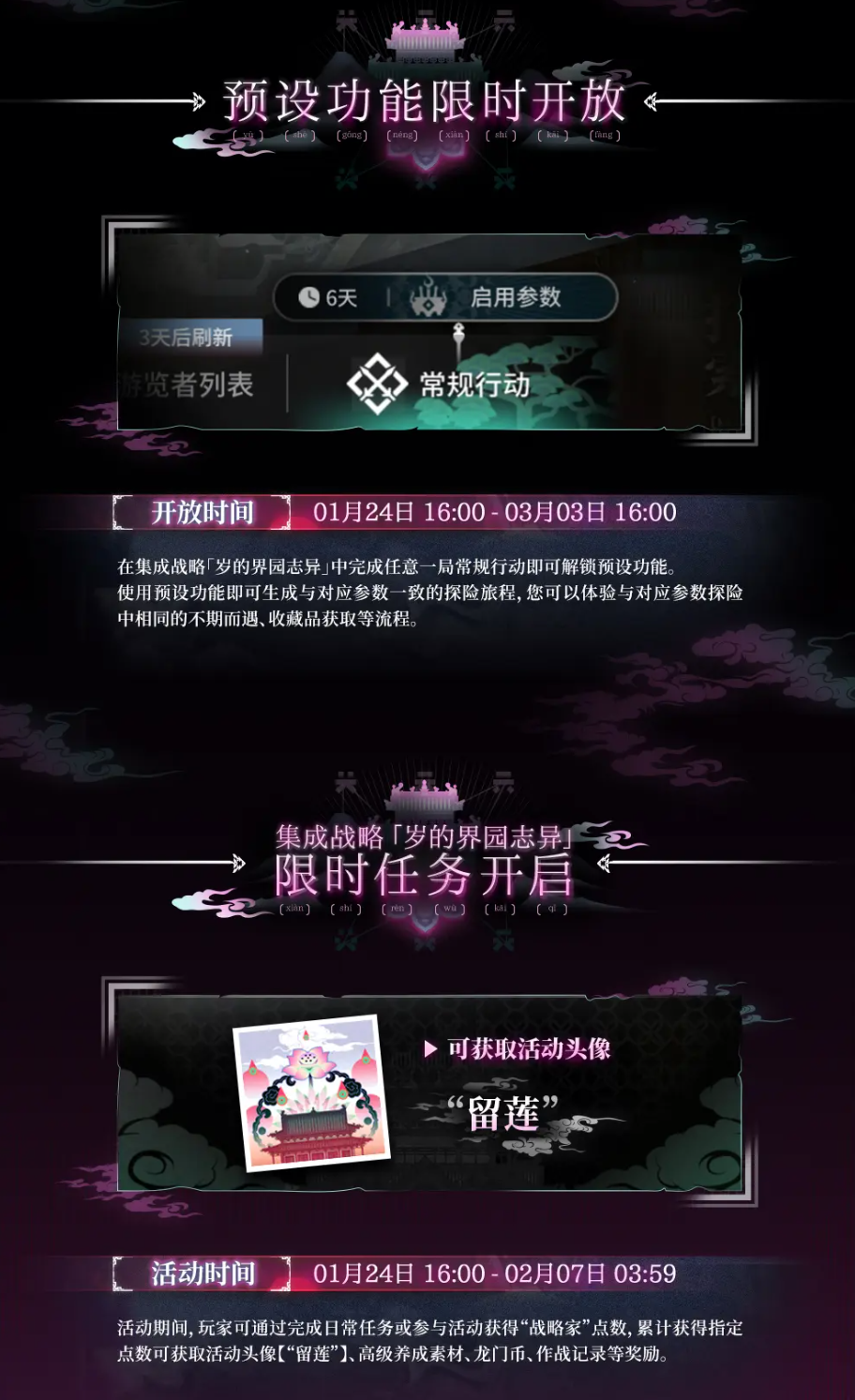可通过完成日常任务或参与活动获得“战略家”点数,累计获得指定点数可获取活动头像【“留莲”】