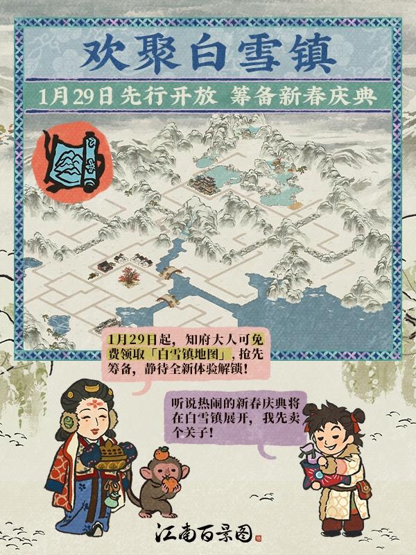 「白雪镇地图」开放免费领取!❄热闹欢腾的「新春庆典」即将启幕,知府大人可抢先前往筹备,静待全新体验解锁~