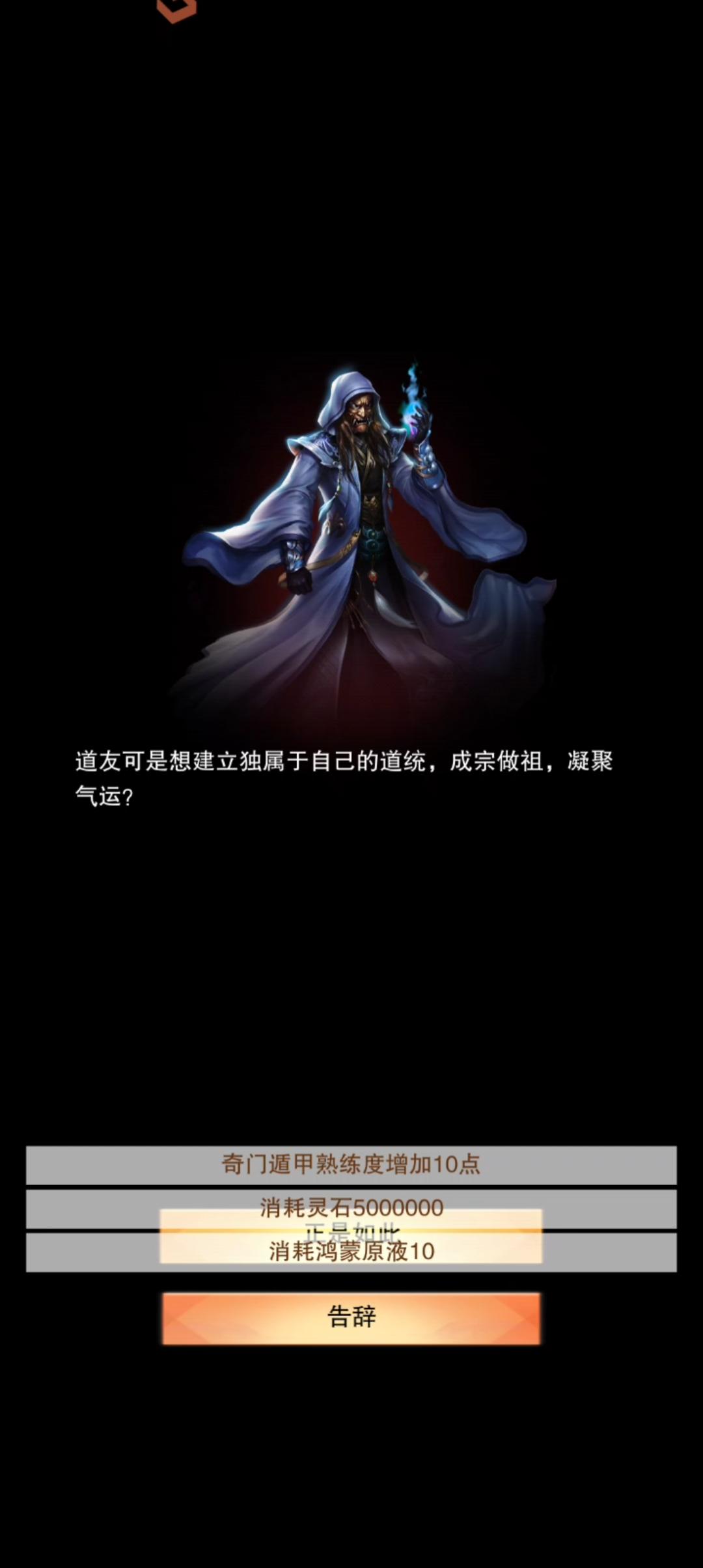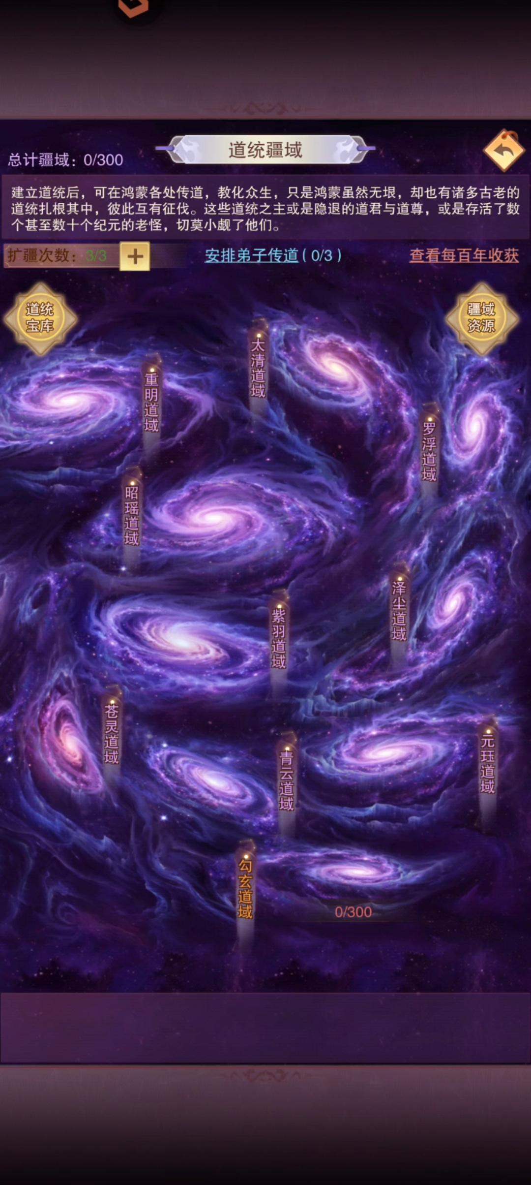 前往鸿蒙道场界面,点击“道统”,花费1道令,500万灵石,10鸿蒙原液,开辟道统。