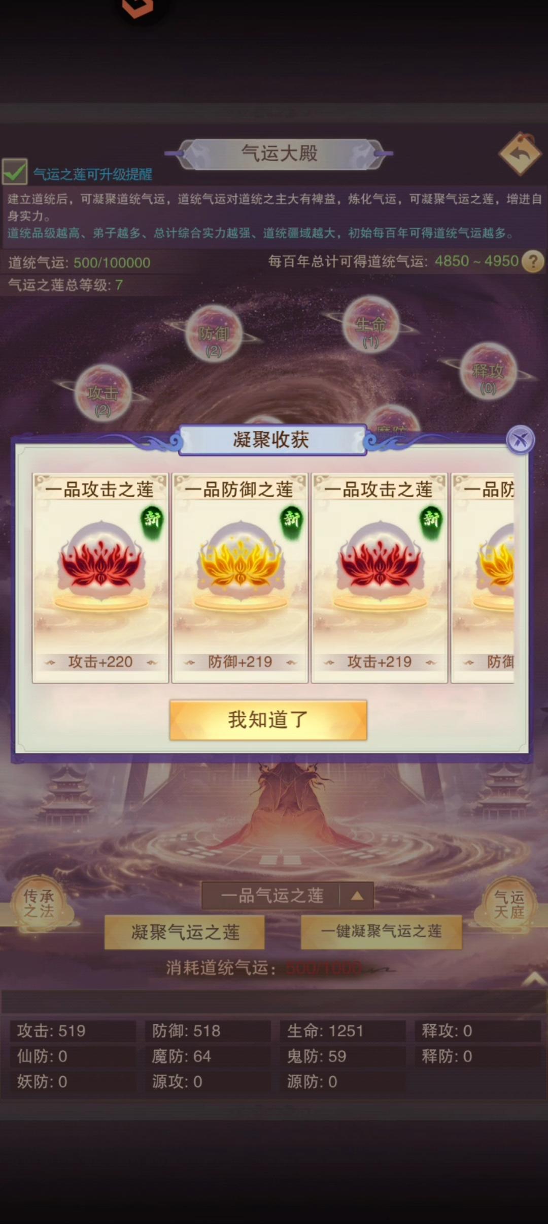 气运大殿是本次更新的属性来源,探索完道统疆域后,需要在气运大殿凝聚气运之莲。