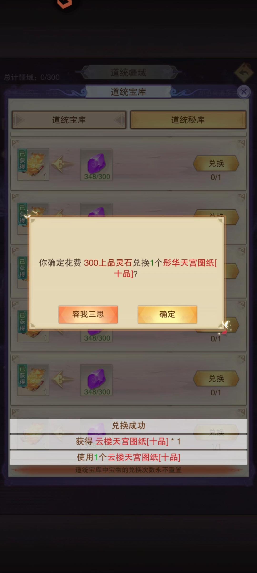 氪金项目和购买道具在“道统疆域”的“道统宝库”