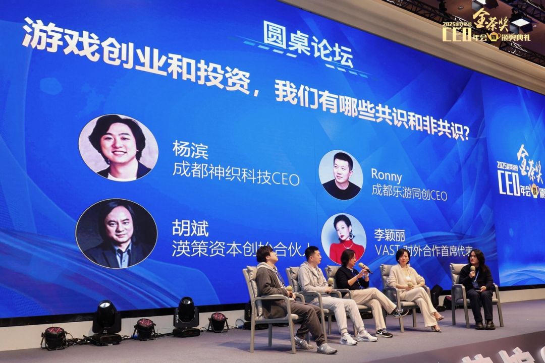 除了现场嘉宾带来的精彩发言,本届金茶奖的主会场中同往年一样设置了主题圆桌,并邀请了来自PC游戏、出海休闲游戏、AI和投资等不同领域的大咖,一起从各自角度展望和预测2026年趋势。游戏茶馆编辑王文杰与四位嘉宾一起,就2026年游戏行业的未来展开了一场圆桌讨论,围绕 “游戏创业和投资,我们有哪些共识和非共识?” 共同探讨新一年如何锚定价值、聚力前行。