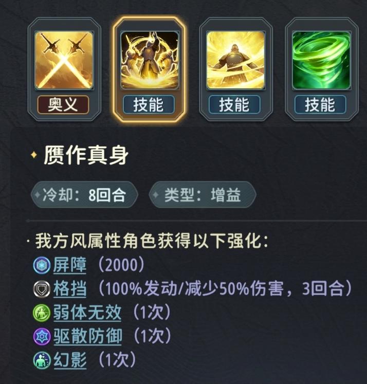 奥菲利亚的二技能可以带来高额的防护效果,当boss进入满豆状态时,可以通过释放该技能来进行有效的伤害减免,是风队抗伤的核心技能。