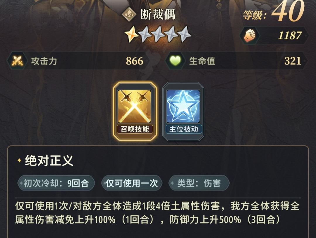 断裁偶:当boss进行某些特定攻击的时候,通过释放可以保证队伍不会吃到此次伤害,也可以用于保护残血队友,在处于debuff无法消除时的尴尬局面(比如被挂上了亡灵化,但是斯文托维特技能冷却中,或是同时两位被挂debuff)