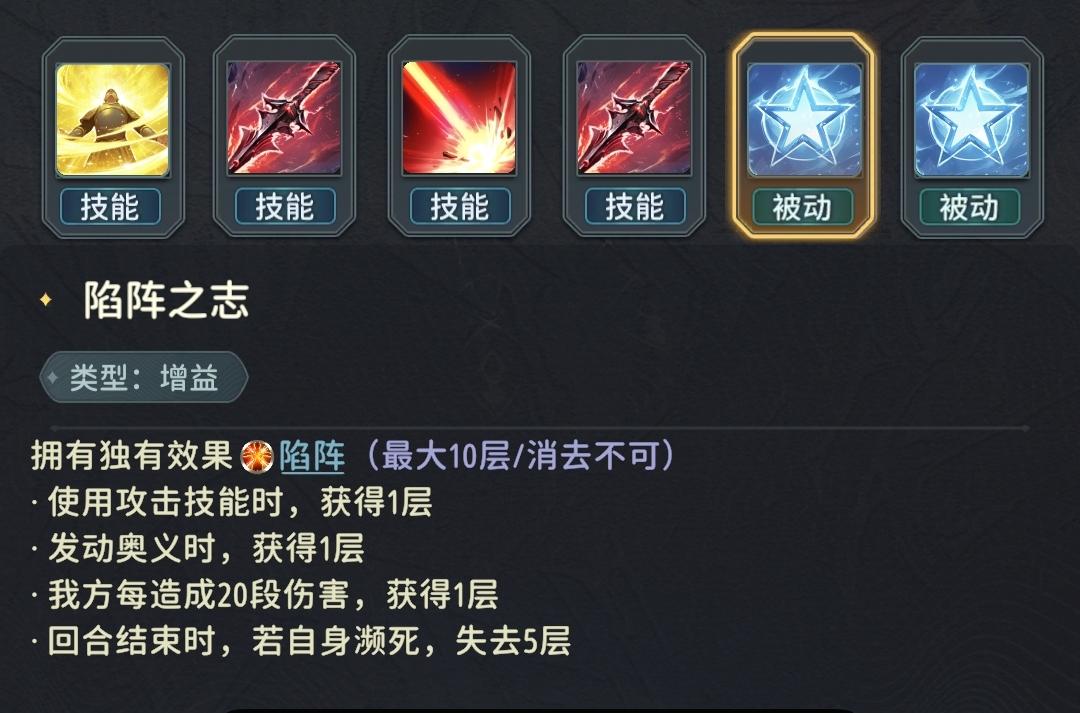 先锋主角的被动可以为自身带来高额的伤害提升,可以通过先锋的一技能叠加自身被动,以保证快速出伤,也可以配合拥有高段数技能的队友,可以最大限度地提升先锋主角的被动叠加层数。