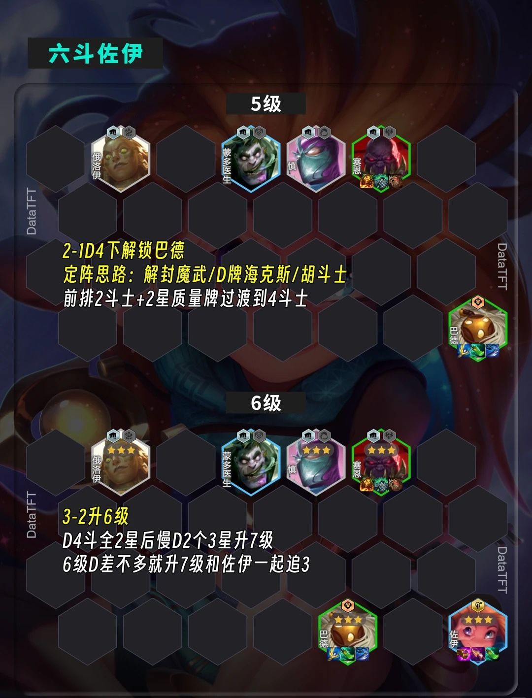 前排2斗士+2星质量牌过渡到4斗士,走连胜/连败都可以