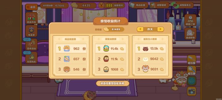 需要满足当需要属性的服务员猫猫才可以获得小费,跟旅店等级挂钩,但过高等级属性要求会变高,所以先6级解锁全部功能,然后提升猫咪好感度属性再考虑升级(已经升上去天天满足不了好感的肺腑之言)。