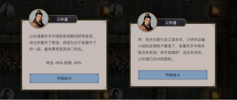 一阶段:展示密信,可获得(Boss-35%攻击,-35%防御)增益buff