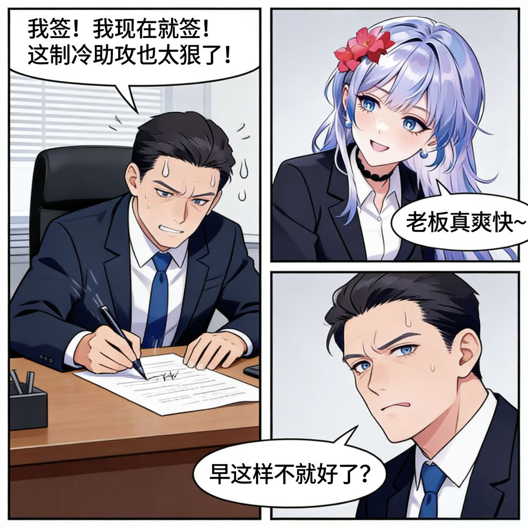 龙之澜:老板,您可别小瞧了,蜜雪儿的冰系魔法,可比中央空调管用十倍。您今儿要是不签,这屋子怕是转眼就冻成冰窖,您这金贵身子可扛不住。