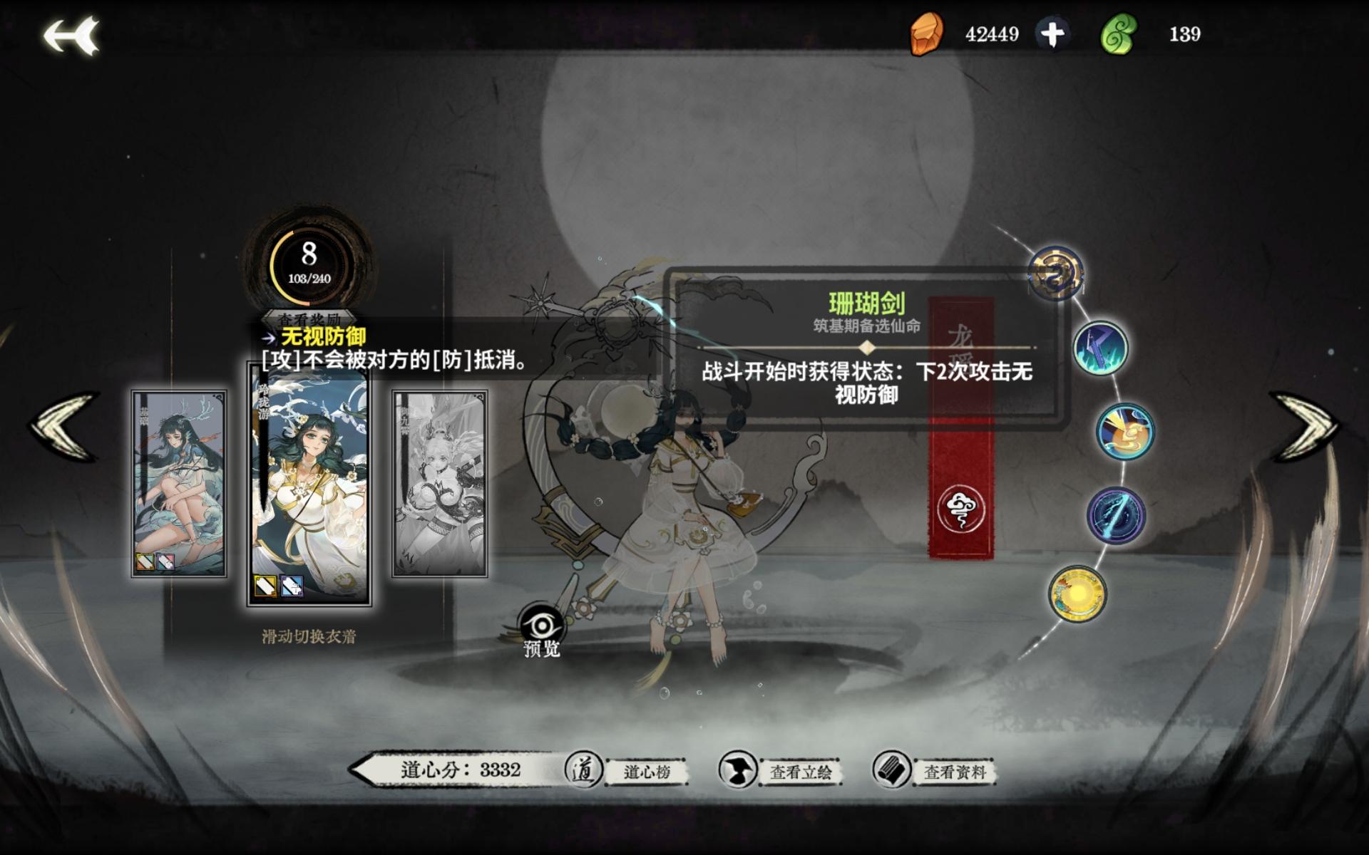 第一轮:多发两张牌组二级卡,d完梦卡组战力最大化即可,两轮筑基拿珊瑚剑,配合琴副职土行曲进行过度