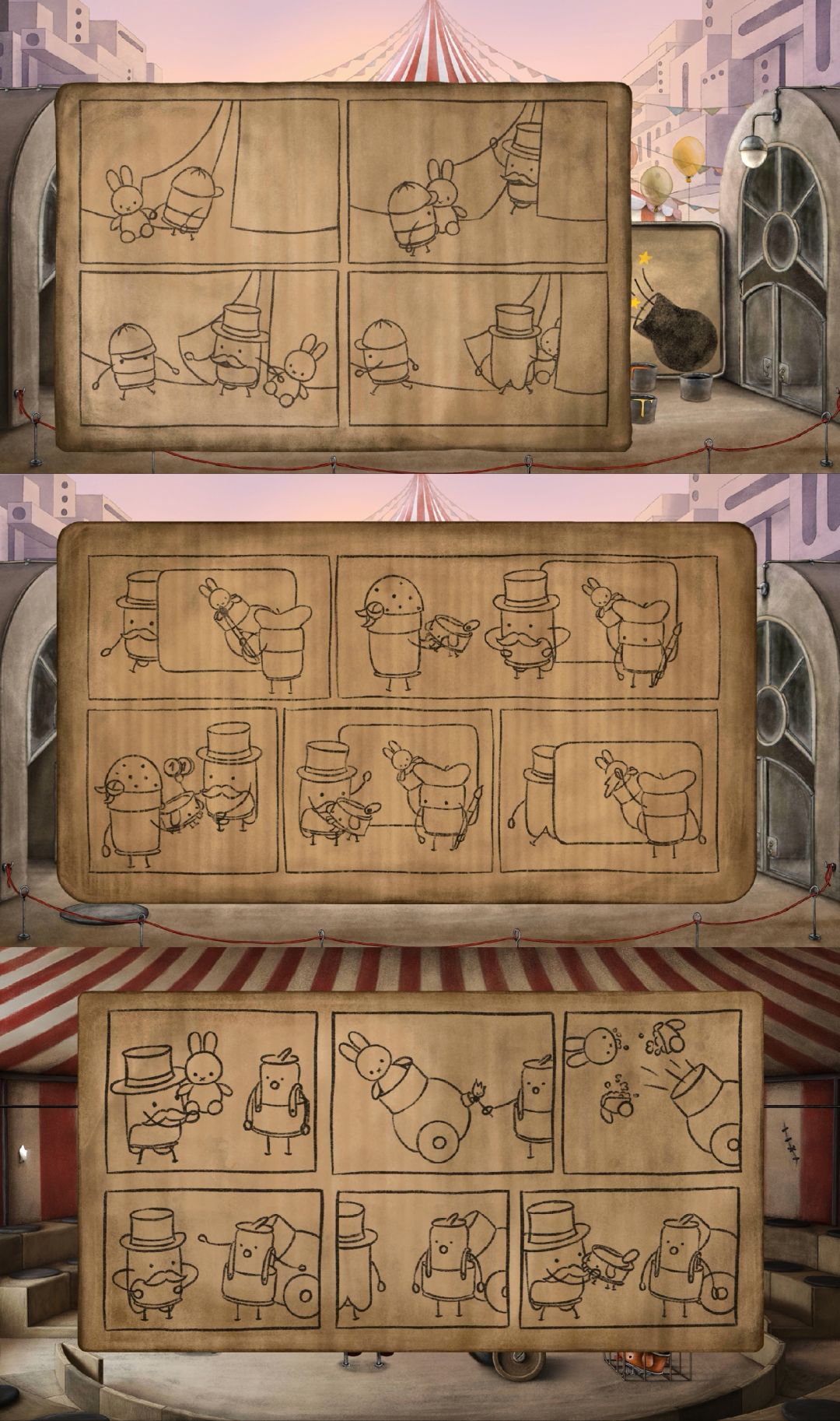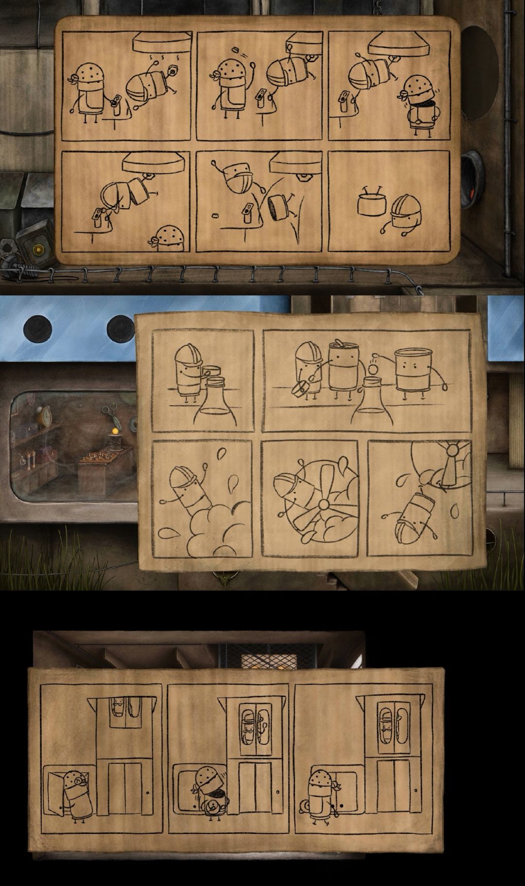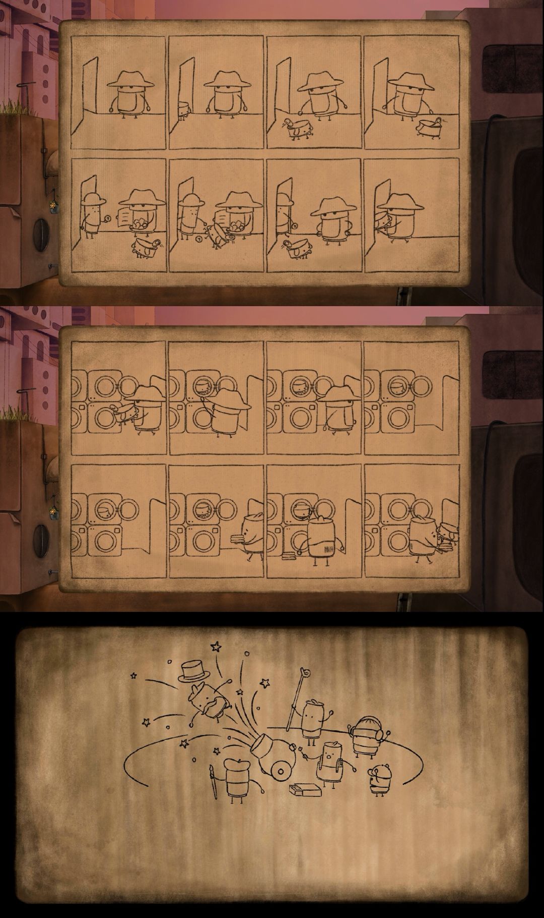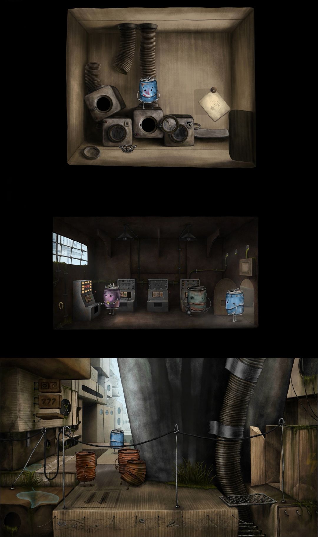 很有趣、可爱的解谜游戏。游戏以一个名为Blue Can的罐子为主角,它生活在一个满是旧罐头盒子的城市。在一次地震后,它的罐子狗狗失踪了,自此它便循着踪迹踏上了寻找之路。这一路上,它遇到很多罐子同类,一步步解开谜题,帮助它们,同时也在它们的指引下,找到罐子狗狗,用3枚金币从意图将其当作炮弹发射的恶霸罐子手中赎出,最终回到它们的小家。