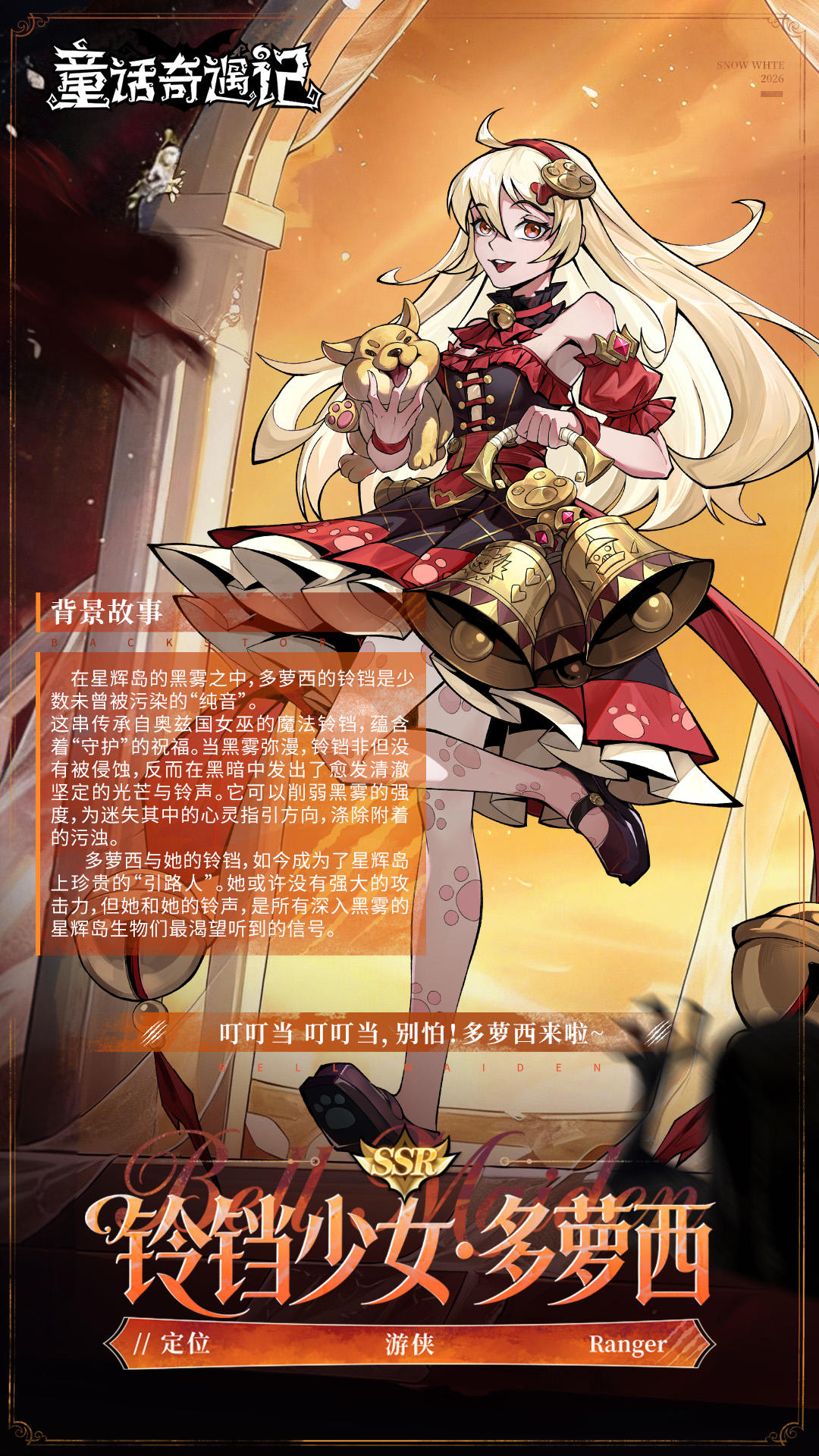 多萝西与她的铃铛,如今成为了星辉岛上珍贵的“引路人”。她或许没有强大的攻击力,但她和她的铃声,是所有深入黑雾的星辉岛生物们最渴望听到的信号。」