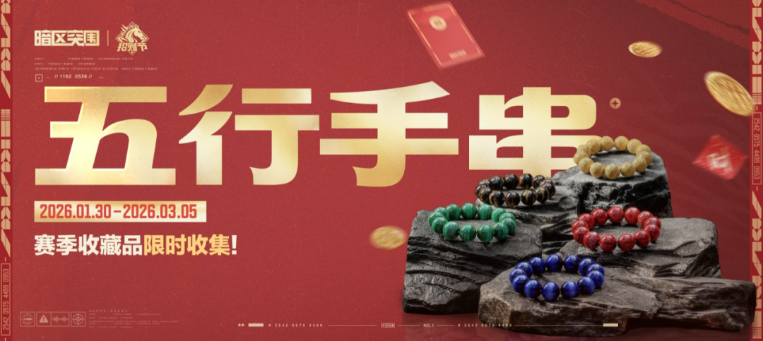 给你的仓库加点年味!活动期间,先锋可在局内概率获得限时赛季藏品【五行手串】!
