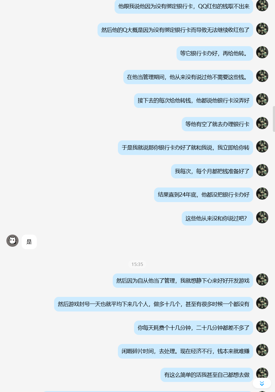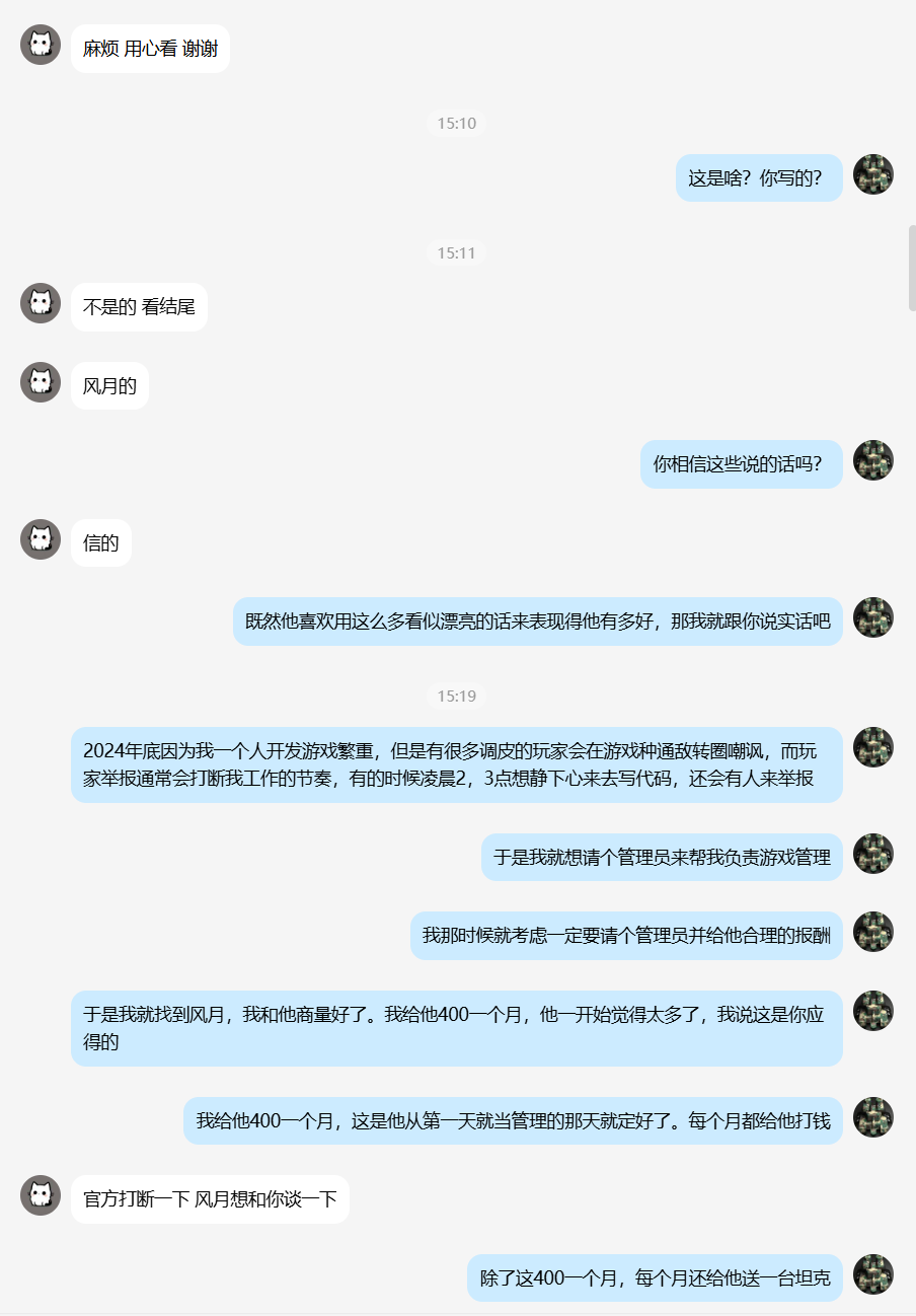为了防止某些玩家不信,以下是和风月的聊天记录。你也可以直接找风月,问他是不是真的
