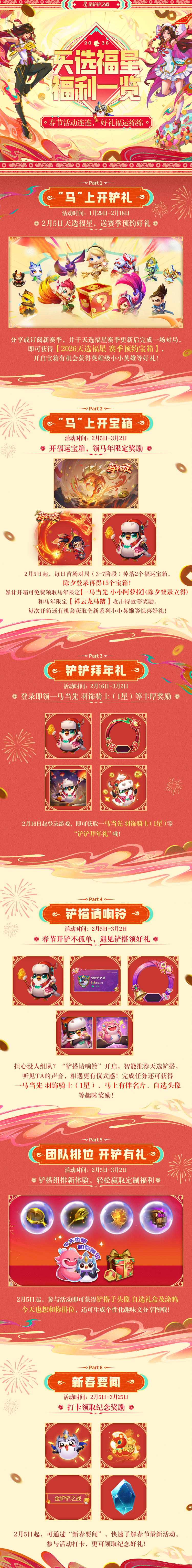 ✨2月5日起,每日首场指定模式对局(3-7阶段)掉落2个福运宝箱,除夕登录额外掉落15个福运宝箱!