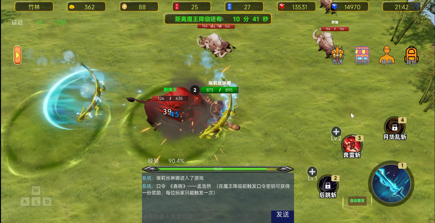 村长事件:去村子右边竹林打野猪王获取野猪王的肉,交给村长可换奖励,首次奖励为烧鸡(村长处最好的奖励),之后奖励则稍微差点