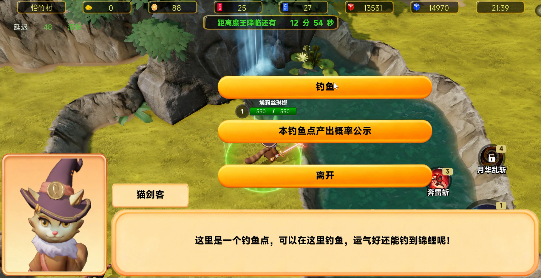 优先去钓鱼,如果已经有人去钓鱼,则放弃钓鱼点资源直接去竹林刷野猪王来获取村长和白衣少女的资源