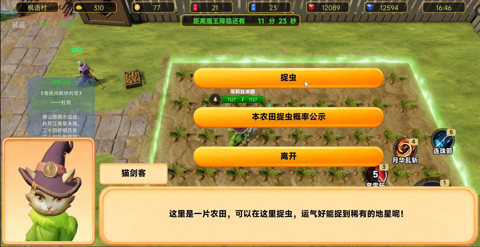 农田:可以捉虫换金币,捉到地星可以交给农妇换神秘罐子