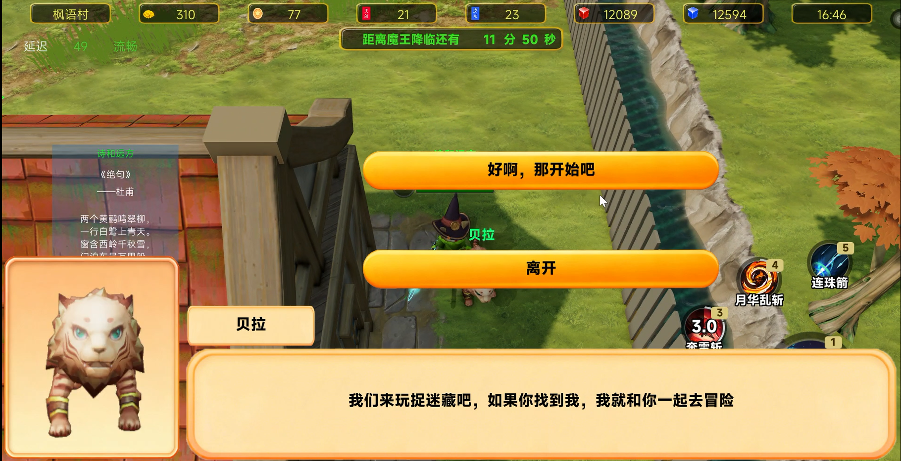 优先去找贝拉捉迷藏,如果已经有人去找贝拉了,可以放弃贝拉直接去后山打虎王,最后去农田捉虫子