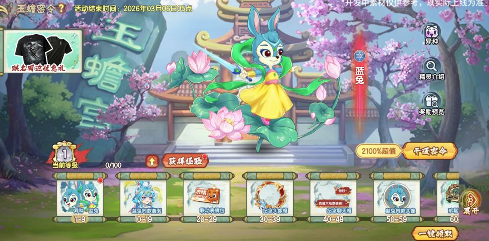 联动通行证玉蟾密令同步上线,购买紫、金密令可分别获得蓝兔、异种・蓝兔精灵,完成任务还能解锁蓝兔服饰礼盒。收集指定联动装扮可解锁珍稀家具与匹配幕布,虹猫长虹贯日服饰等内容将于2月6日版本更新后上线。