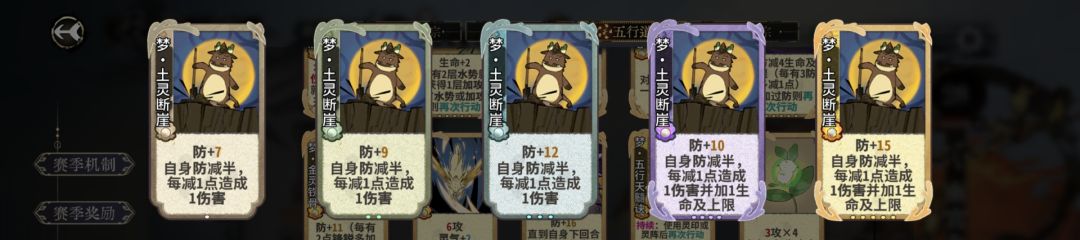 练气:自身7数值同时让防有保底数值不那么依赖对位,和南宫的土印之类的卡还有配合,但是数值不如五行刺,这里给到顶级。