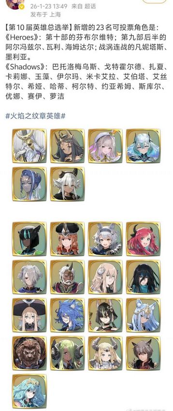 大的出现啦家人们哈哈,最近《火焰纹章英雄》这款游戏又出现了一件不得了的事情!这款由任天堂旗下知名战棋单机IP《火焰纹章》系列改编而来的手游作品,在刚公布的第10届英雄总选举可投票角色名单里,居然混进了一大堆来自《Shadows》(火焰纹章Shadows,中译为暗影、影等)中的“老朋友”,相关信息引发玩家热议。