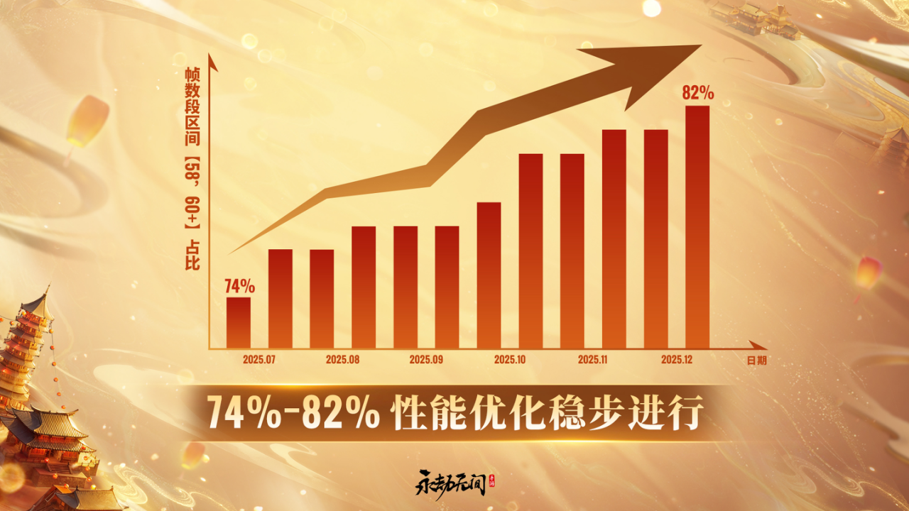 2025年,我们将整个游戏体验从头到尾进行了优化。玩家设备帧数区间在58帧以上占比从74%→82%,保证大家享受流畅的刀光、美景与酣畅的对局!
